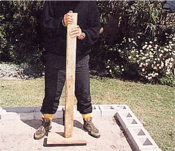 This particular concrete slab was cast to support a timber stud structure and a 75 mm-thick slab was laid on well-compacted fill. Low-strength concrete (cement, sand and stone mixed by volume in the ratio 1:4:4) is suitable for most garden buildings, and it was this mixture that was used.