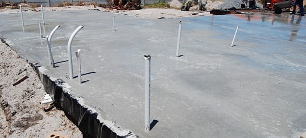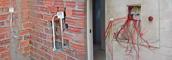 To be able to provide electrics & lighting to a home, the builder lays conduits which are plastic or metal pipes through which the wiring will be threaded by the electrician. The conduiting can run either within the floor slab or within the roof space, from where it is chased, or cut, into the walls so it can be positioned to extend to various outlet points where light fittings and plug points are needed.