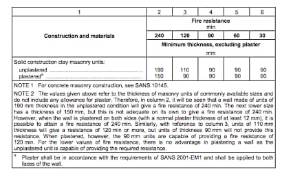 I have come across other tables and graphs of fire safety that showed the safety distances in more detail (values doubled-up as well )than the current table of SANS 10400-T: 2011, which is reflecting only one half of the overall distance.