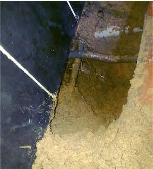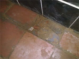 The property owner’s “plumber” of choice, it seems, knows the pipes and fittings like the back of his hand. He’s been there, got the T-shirt (in fact several it seems) and, on this occasion, was able to smile with pride as he smashed through the floor with a four-pound hammer… to reveal the evil leak, which was even worse than we had imagined.